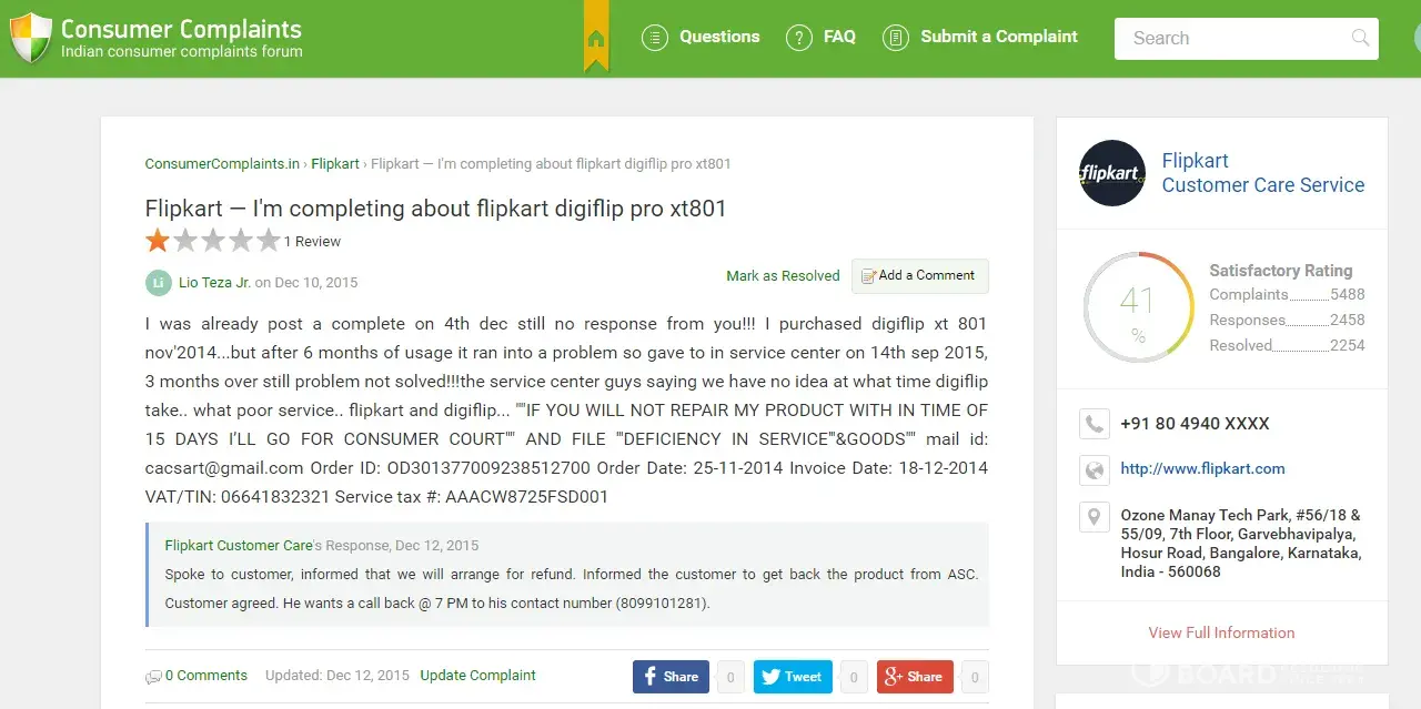 Flipkart Internet complaints: history and resolution overview