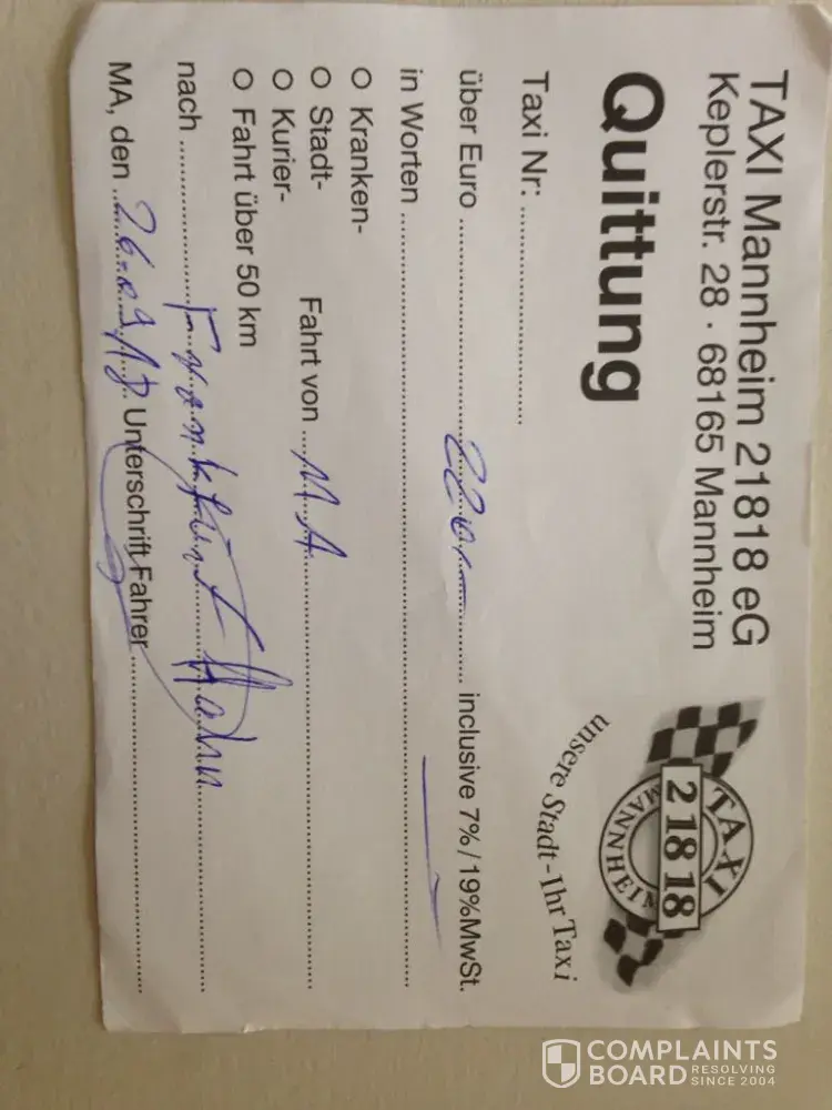 I have attached the taxi quittung.