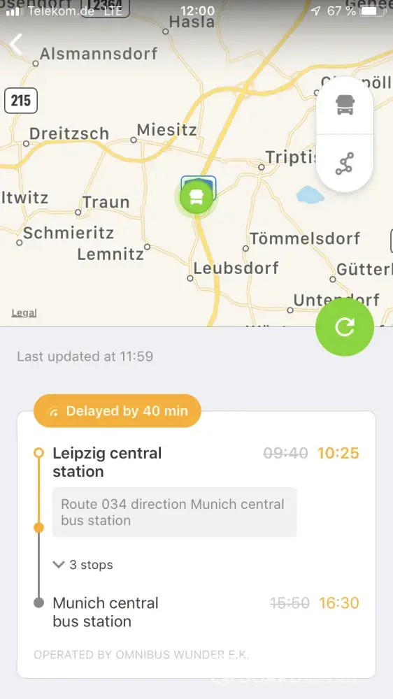 Booking on route 34 Leipzig - Muenchen. Bus scheduled for 9:40.