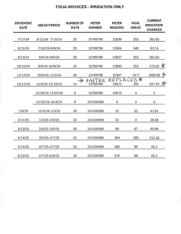 FGUA water irrigation invoicing issue