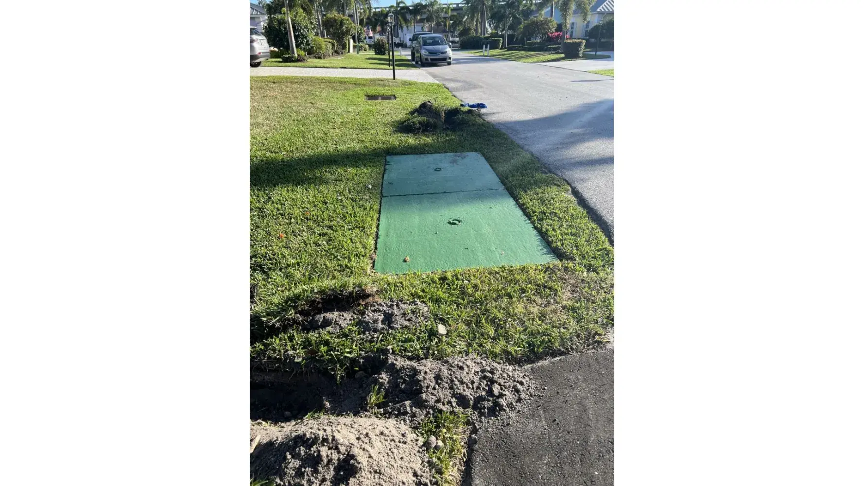 While FPL was installing new power lines on Del Haven Drive in Delray Beach they damaged some sprinkler zones. Where you put the large concrete boxes with covers You "cut" off (literally) a 11/2 inch supply line. We have a sprinkler company attempting to trace the other end which ran directly into your box. The entire zone has dead grass, some you installed. Many heads are buried or missing. The association should not be expected to carry this cost.