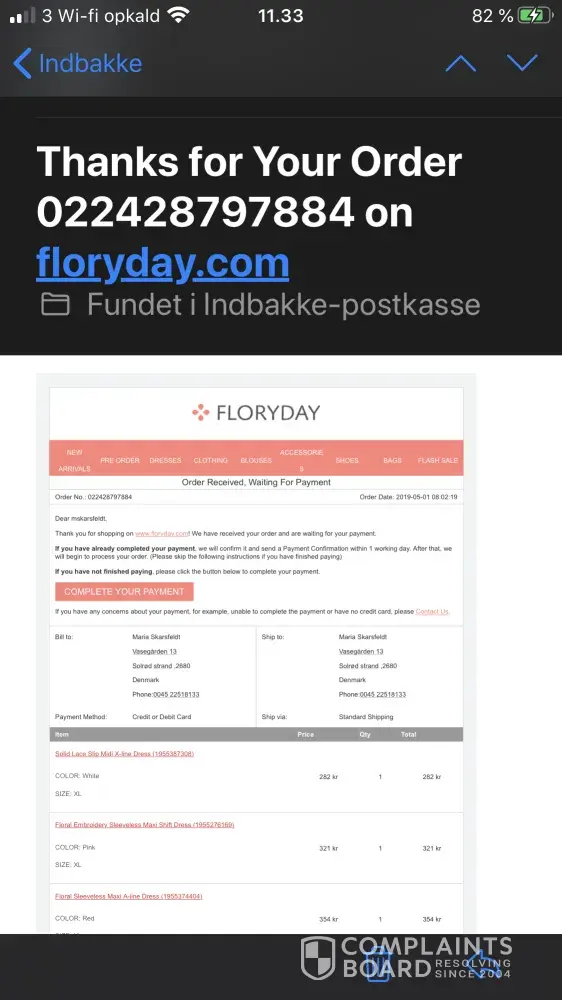 The 3 three dresses were not fitting and of low quality so not my choice and waiting for a response! Now again Sending a copy of return from danish post from May 2019 and still waiting ! Order nr. [protected], kind regards Maria Skarsfeldt
