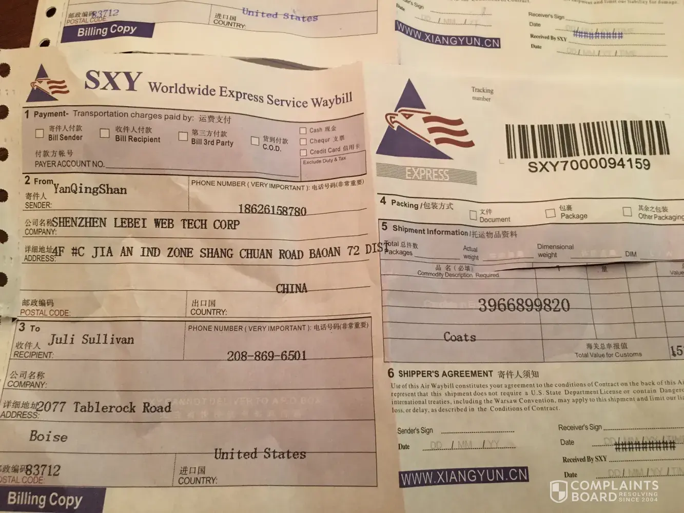They said if I would take my complaint of this sight... they would refund 70% of my money and I could keep the three coats I ordered and wanted to return...