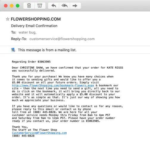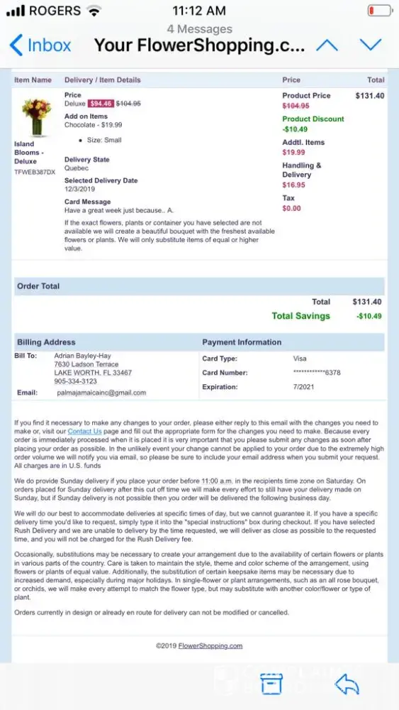 FlowerShopping.com scam - took the money and did not deliver the flowers