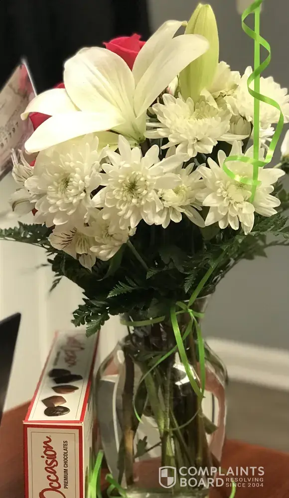 I ordered a bouquet for my mom's birthday. She got it on time, and the flowers were fresh. However, the vase was a SIMPLE GLASS VASE which you can buy in any grocery store, BUT it was supposed to be delivered in a SILVER REFLECTIONS vase; the green fillers were not even close to what is shown at the picture, the balloon was barely blown up. The bouquet looked nice, but far from what I ordered. When I sent them a message with my complaints, they answered me with a copy and paste message offering 10% off, later they offered me 20% off. However, when I called them, the guy on phone started out very well, then he put me on hold, and when he was back, he was extremely rude to me, didn't want to listen to me at all just kept interrupting and saying "Do you accept 20% or no? This is the maximum we can offer; do you accept 20% or no? Do you accept or no?" And as soon as I said OK, he just hung up. I paid for the bouquet over $100 CAD, but I can buy a very similar one almost two times cheaper in Metro or anywhere else. There are so many other sites where I can buy flowers online. This was the worst experience for me.