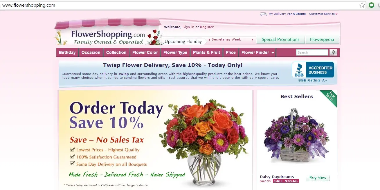 Flowershopping.com service is absolutely horrible. Their website indicates there is a) service in twisp, wa, b) a discount for orders in twisp, wa and c) guaranteed same day delivery. I placed an order yesterday, confirmed the recipient details yesterday and then receive a call today that they cannot delivery the flowers I ordered for my mother's birthday.
