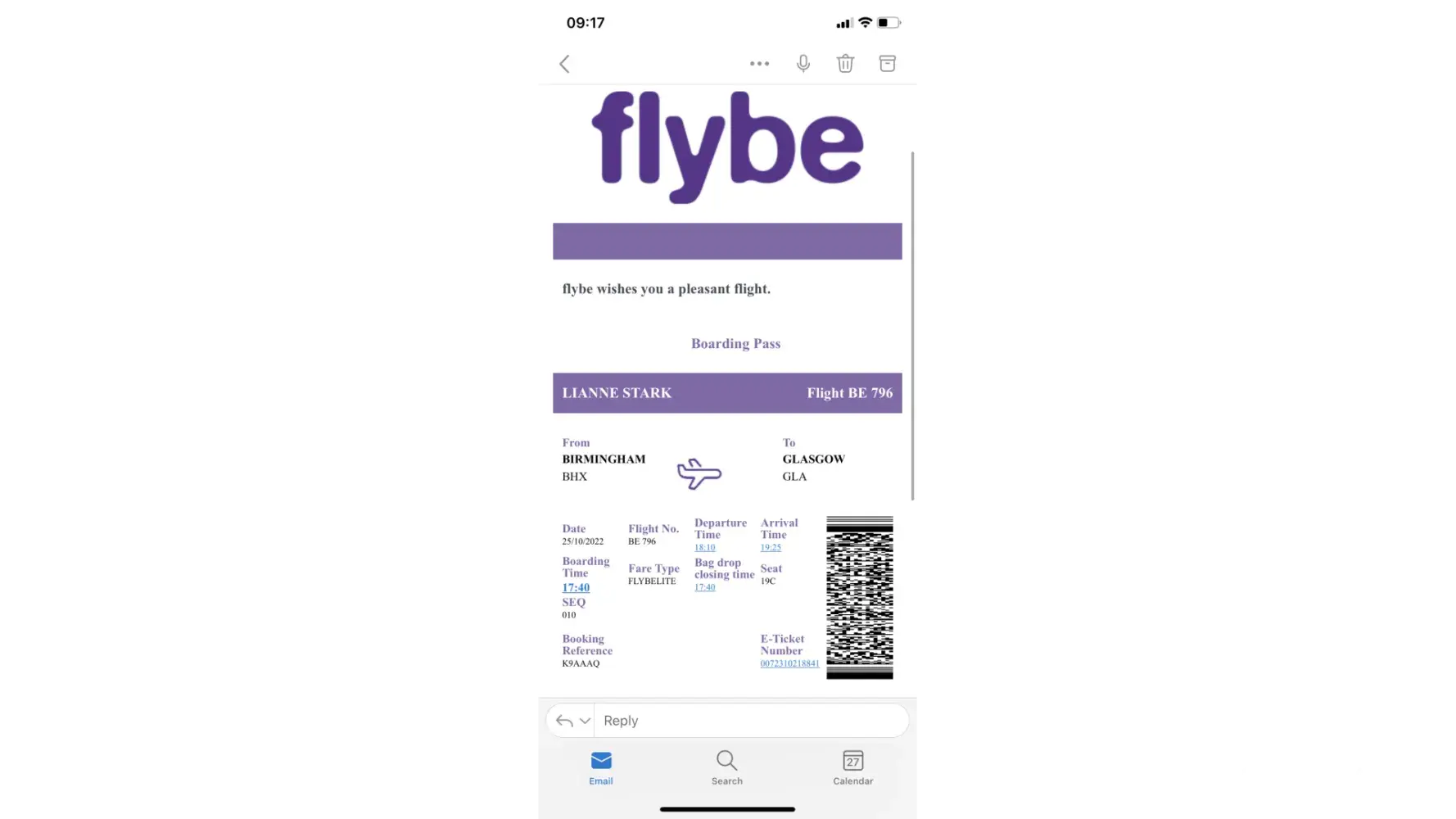 My flight back from Birmingham to Glasgow with my daughter (because she is too young to travel alone) was also booked with Flybe and due to depart Birmingham at 1810 that day.