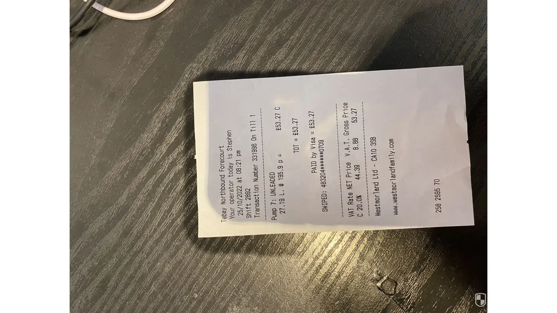 53.27 - Petrol - Tebay northbound (receipt retained)
