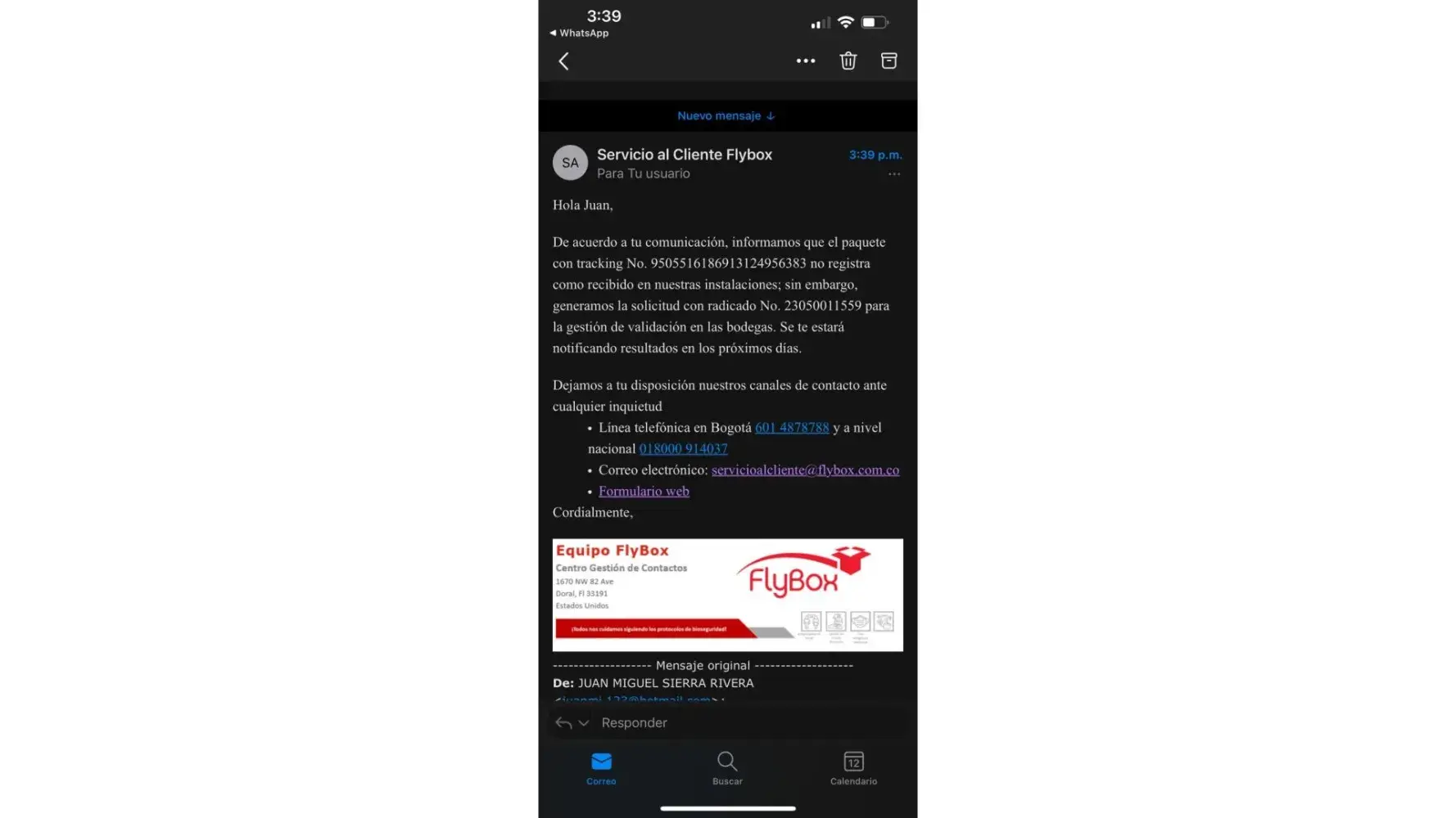 I shipped on May 6, 2023 a medium size box to Miami where my brother Juan Miguel Sierra has a P.O Box 32118 with FLYBOX.
