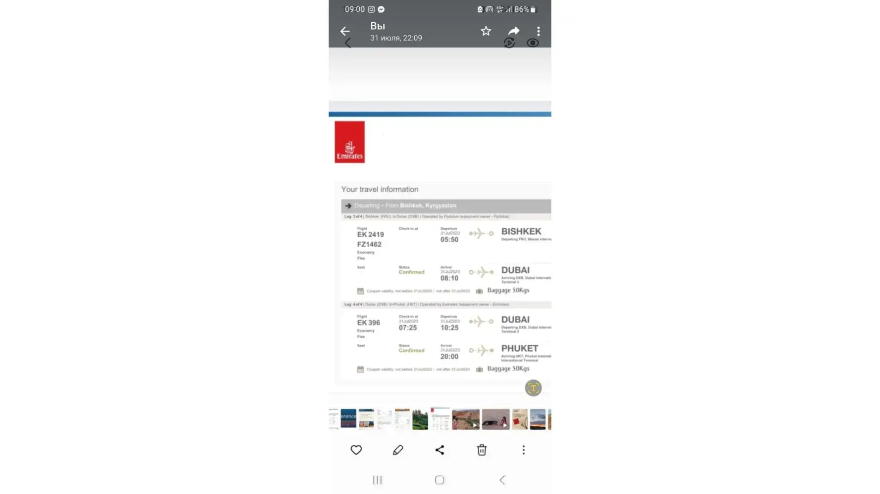 2. EK396 from Dubai to Phuket, Thailand at 10.25 at 31.07 by Emirates.