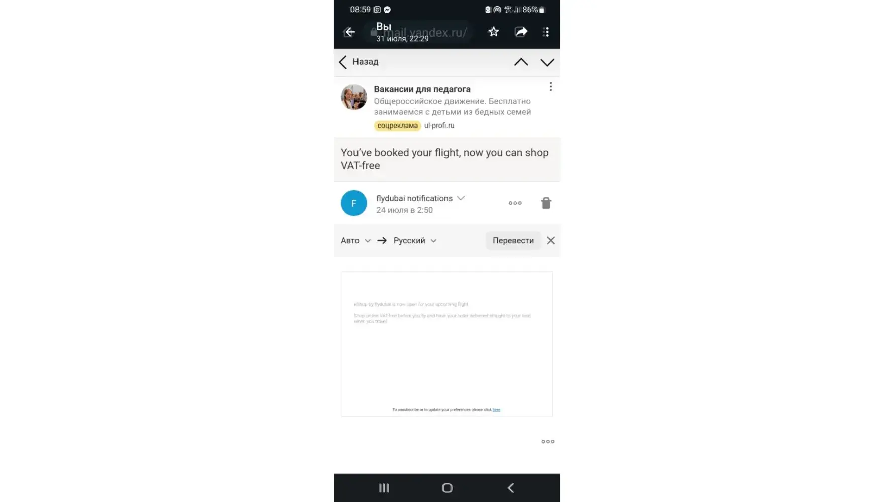 The problem is that 31.07 in the morning I came to the airport at Bishkek at found out that my first flight was cancelled. I didn’t have any notification on my email or my phone. I just received one message from Fly Dubai about VAT-free shopping and nothing more.