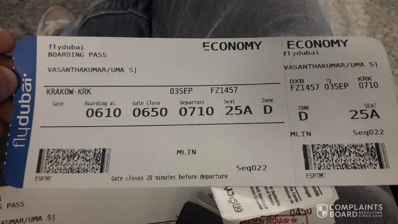 I have booked a flight ticket from Chennai to Kraków in Fly Dubai Airways.