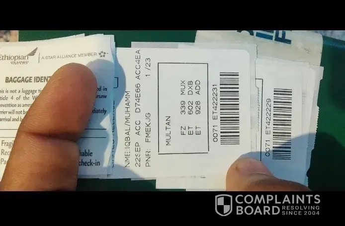 Hello Fly Dubai I was travelling from Accra (Ghana) to Mux (Pakistan) on 22-09-23 via Ethiopia airline time 22:00 from Accra, During Checking IN for my luggage there was a mistake from the person that they make a tag 23 kg instead of 15 kg. I have 5 bags,4 bags having weight from 13kg to 15kg and 5th bag was for infant around 8,9 kg. After landing in...