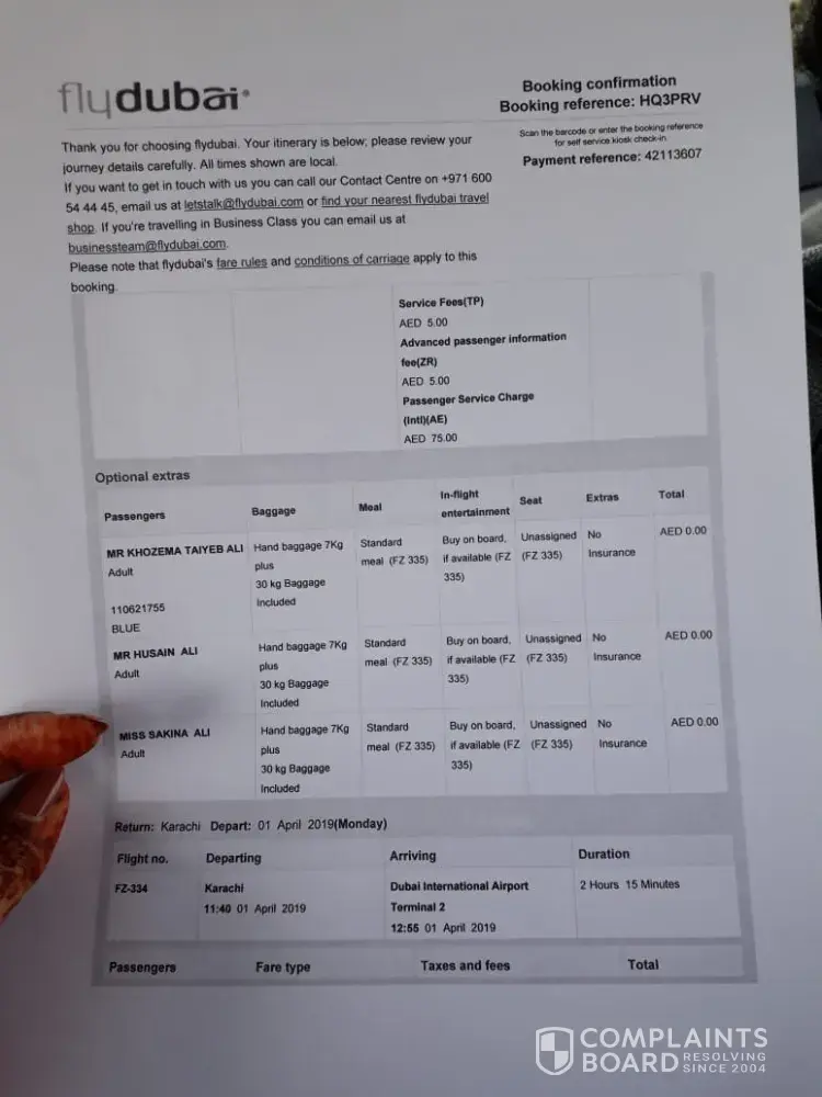 6. When flydubai airline officials informed about 12 hours flight delay then we demanded hotel but flydubai airline official refused to accommodate any staying hotel, food and give instruction to wait in sitting area. After long hours wait my sugar level went down because I am diabetic patient. In this situation, I must immediate need of food but I was out of UAE dirham. So, I exchanged my Pakistani currency from currency exchange and bought food two times for myself and for my wife as well as she was also hungry.