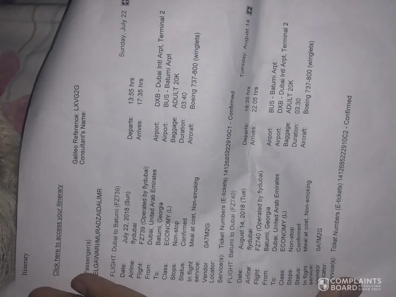 My name is Omer Salih, as a frequent customer of yours I'm writing in regards to a very distasteful experience we had with your company. We booked a flight going to Tbilisi with my wife Fida Issam on June 26th, 2018 flight DXB-TBS / (FZ 8503). It's also worth mentioning that it was (Honeymoon vacation) but due to this experience me and my wife and after two weeks still feeling quite tired.
