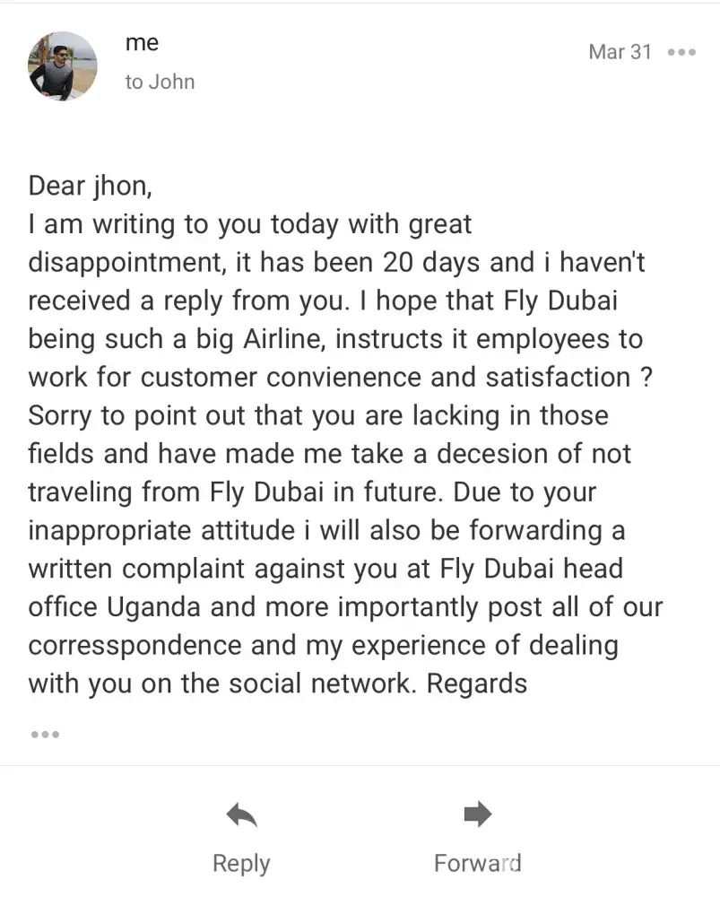 Someone at the frontline having this attitude would affect the people's view on FlyDubai's service.