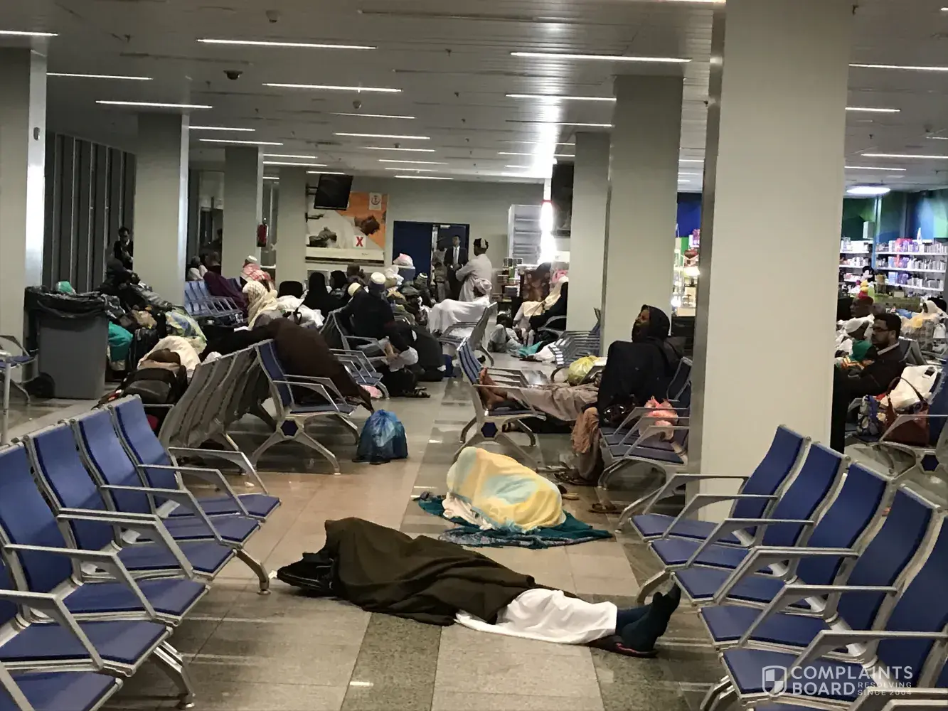 After passing the boarding gate we were kept waiting till 6am no body told us what is going on, people are so crowded AC is broken, people sleeping on the ground mess is everywhere, we requested to see fly dubai agent or any employee from the company no one came, or give any attention because they don't want to!