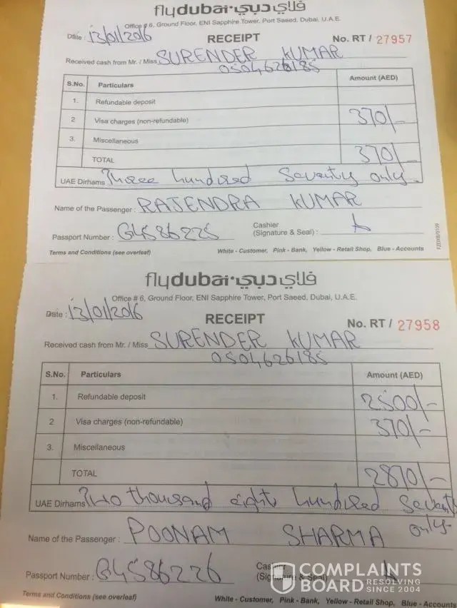 My name is salman amir rehmani . I booked an online ticket with fly dubai on 13 september 2015 . I made the payment through my bank emirates nbd for that ticket . My flight was on 15th september. Due to some technical fault in fly dubai payment system, they did not received my payment . I called them and they ask me to make another payment for same ticket via other payment partner. I took my flight and after coming back when i contacted them, they did not reply me for 2 weeks. After 2 weeks they replied me that its under investigation . On 3rd oct finally they acknowledge that they have received my payment twice and will refund the first payment to my same bank account whiten 4 to 5 weeks. On 11th nov after 5 weeks, when i contacted them again, they told me to wait more. On 18th nov i got there email. That they have made a cheque for the payment and i have to go my self with all documents to collect from there travel store. Although there staff confirmed me that amount will be credited to my a/c . After 2 months of pain, that i went starting from 13th sep. When i was running here and there and made another payment till today . Fly dubai has never listen to me . Now when i go there to collect the cheque they deduct 50 aed servise charges for the ticket i never used.