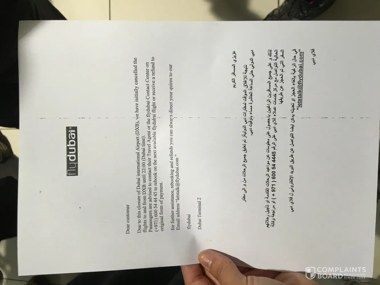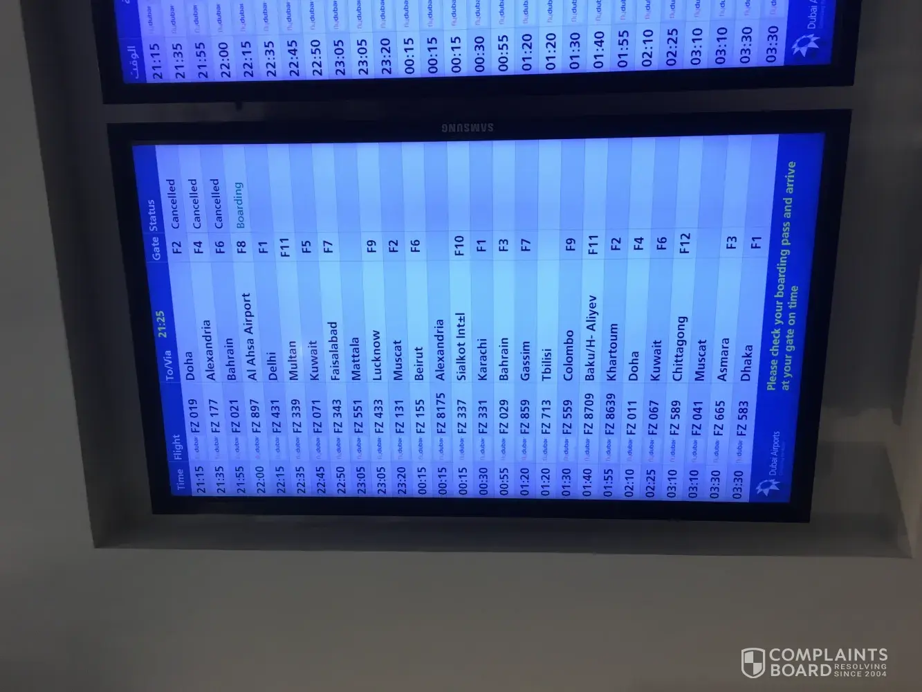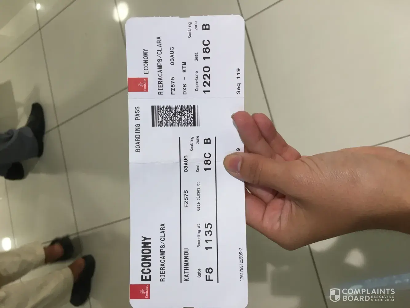 After all of this, we didnt get any complain form from flydubai (They told us they dont offer refunds and only accept complains online). We arent given any further answer from them and the flight in which we are rescheduled takes off with 1h of delay (At 1:30pm). We also missed the flight from kathmandu to pokhara and had to buy a new one, no one offered to help us since it was not booked in the same booking itinerary.
