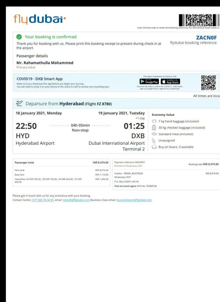 I was booked a flight back to Saudi Arabia from cochin airport on 7th February 2.35 AM. (PX7VGE) FZ-442. Due to the road block I reached airport bit late by 1.25 am, an hour before the departure.