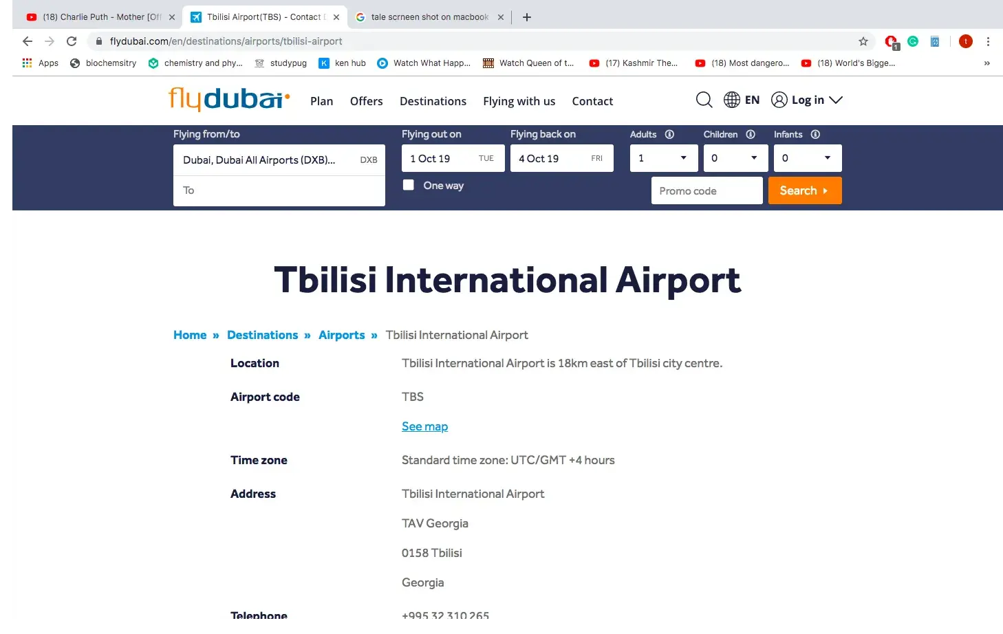 I had a flight from Tbilisi (Georgia) to Dubai on the 29th September 2019