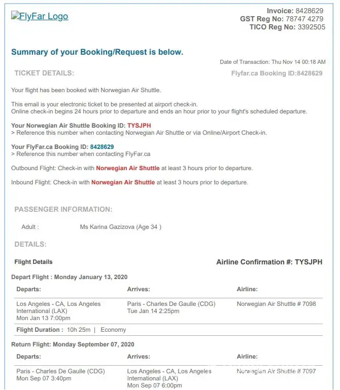 1.-I have booked flight through FlyFar to Amritsar from Calgary. The there order number was L6PSXD and PNR number was USJAXS