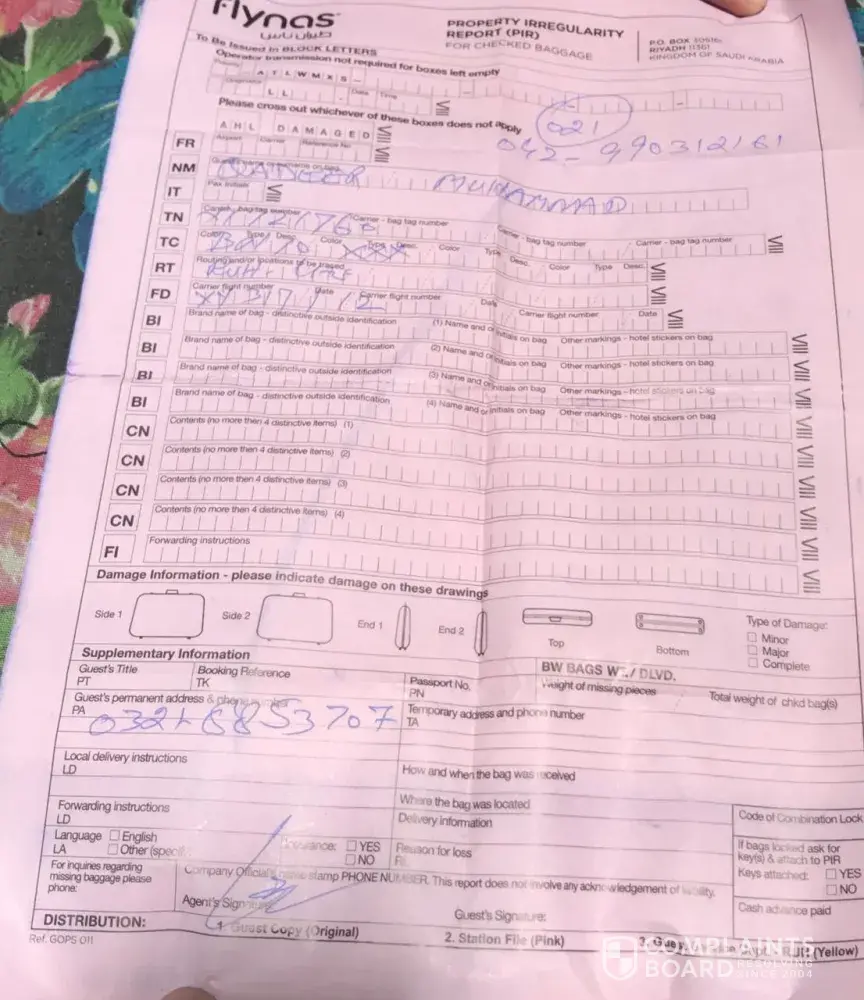 On arriving Riyadh airport i made a complaint about this to Riyadh Airport Flynas Office and given the ticket and payment receipt copy to officer. he told we will get back.