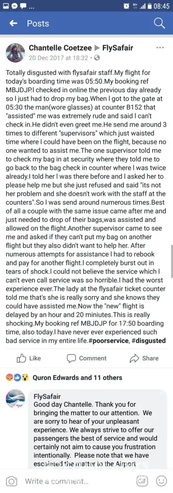 Have been flying with Safair on numerous occasions this year and have always had ex excellent service, one bad apple spoils the whole barrel.