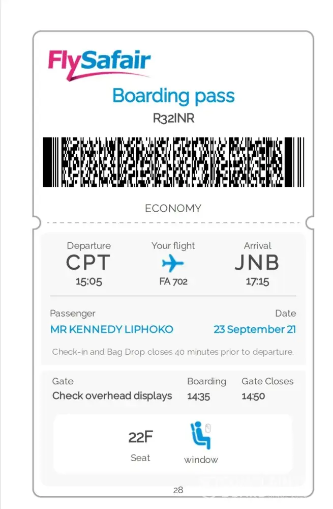 On 19 AUGUST 2021, I - Gabriella Abrahamse, was booked on a flight from King Shaka International Airport to Lanseria Airport in Johannesburg.