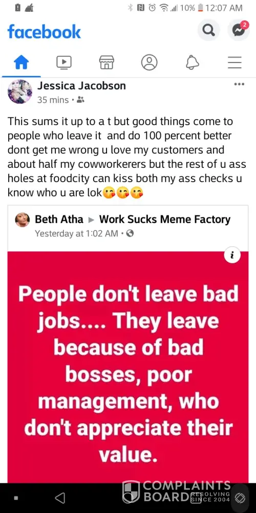 I was a employee at food city a manager there was talking about me to other employees im done. This accured 2/28/17 manager was josh [protected]