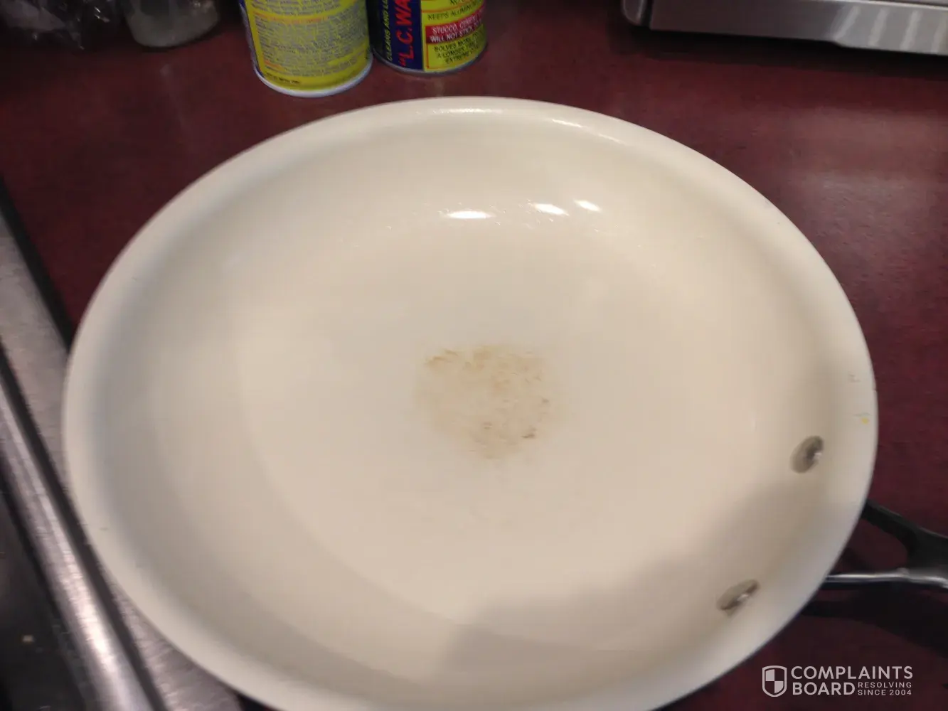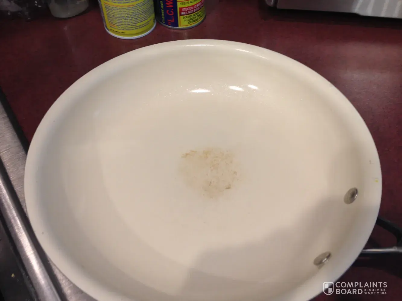 I received a food network pot set for a present. I loved them until the frying pan has a circle in middle that sticks and the small pot that I use every day for hot cereal has chips all around. I use wooden spoon all the time. The rest of the pots are wonderful but these two that I use constantly are messed up.