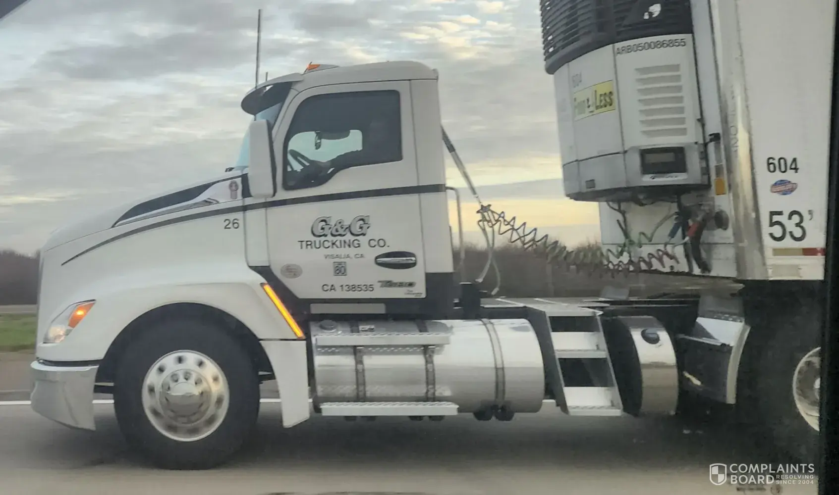 Good morning, this am one for you sublet drivers did not move over for me on freeway. Gave me slim area to on shoulder and small area between him and truck in front of me. Drivers cab had G&G trucking on the drivers door. CA 138535 was door tag.
