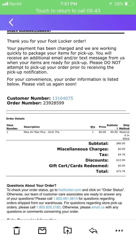 Foot Locker places an order and item never made it.
