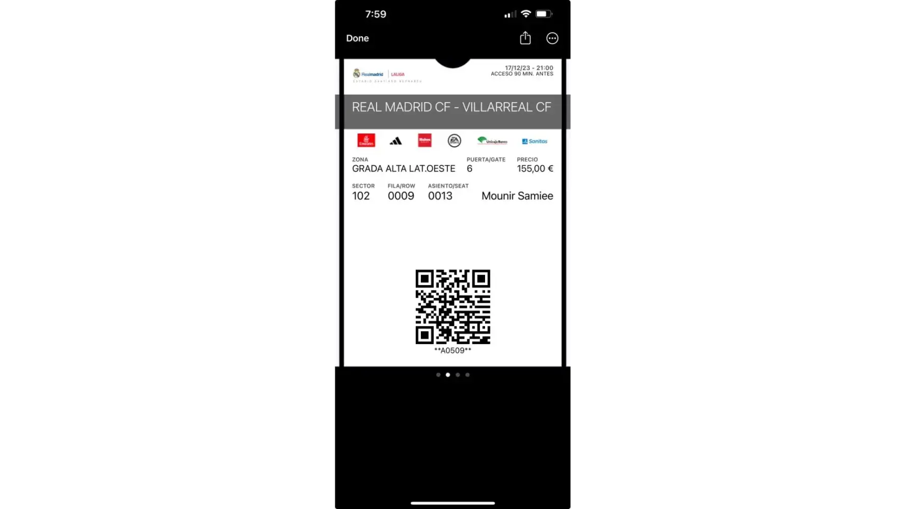 I bought the most expensive 4 tickets available on their website and then I travel with familly from Sydney to Madrid to see the match and just 6 hours before the match start we received our tickets in different rows 2 by 2 in result of that we lost our money and had watch the game from our hotel room . They could not help they did do any thing .
