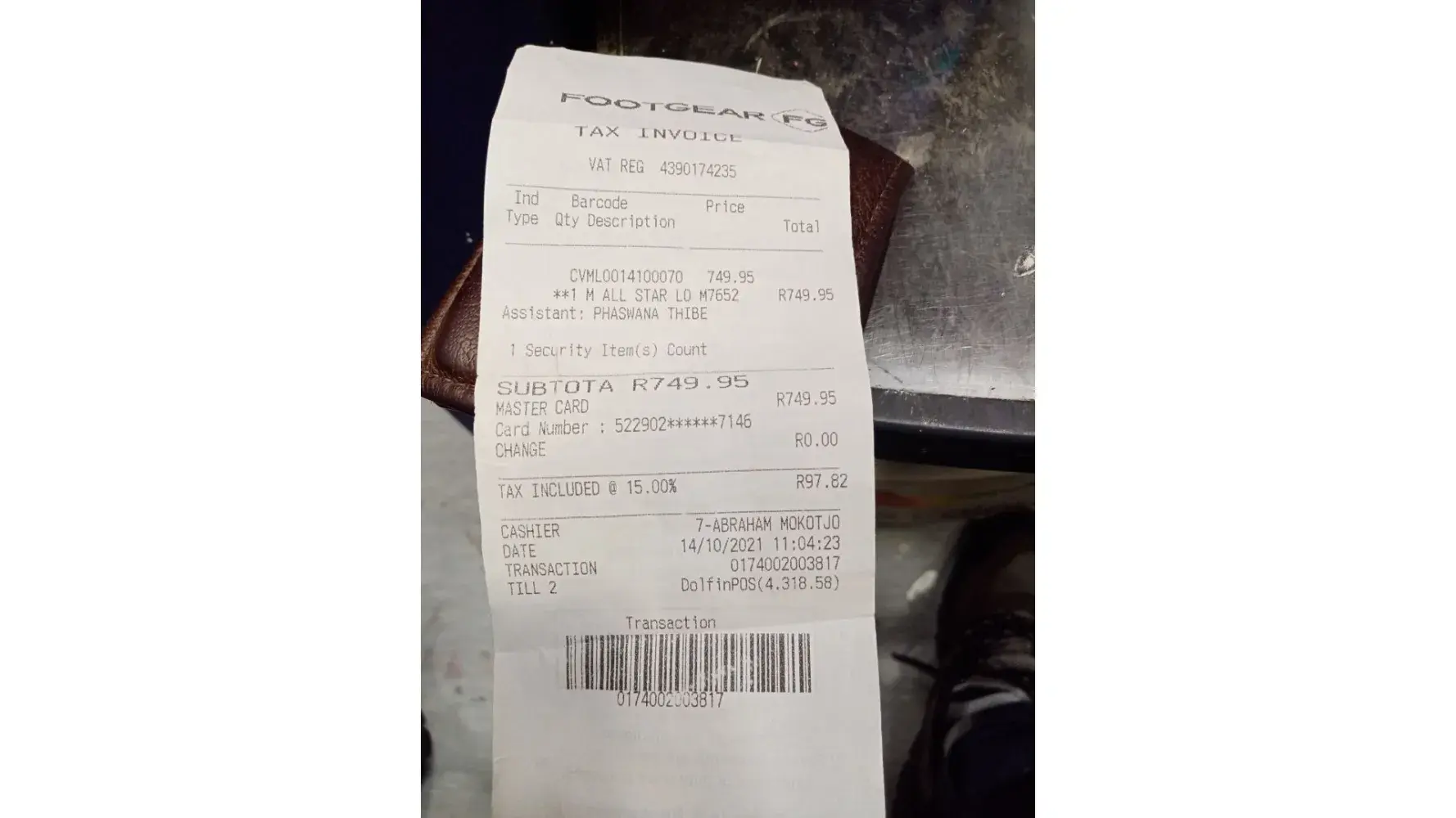 On the morning of 14 November 2025 I bought a pair of Puma sneakers from Footgear. The service I received from the salesman was superb and excellent. On the same day later when I got home I tried on the shoes to make sure they both fit and look good and feel good because I had only fit one side of the shoe,which was the right side. Whilst trying to walk...