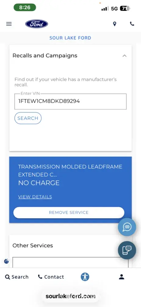 When I bought the vehicle, I did a vehicle search Carfax bumper and then a national motor vehicle check on the van and it showed up. I had a recall, customer satisfaction recall for the transmission molded frame so to schedule a service so I did I scheduled the service and they told me that I was covered. It was free and everything when I got there I drove our way and they said I wasn’t covered.