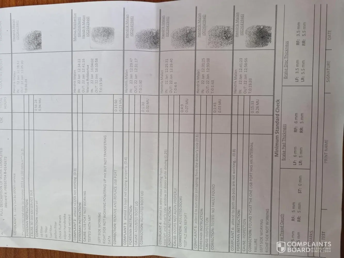 3. USB not working - reported at 60 000km and 80 000km service intervals. Reported at 100 000km again as it still does not work. Internal pin broken off affecting both USB ports. Still waiting for picture thereof from Service advisor. They quoted me R1600 where it should have been fixed at previous services.