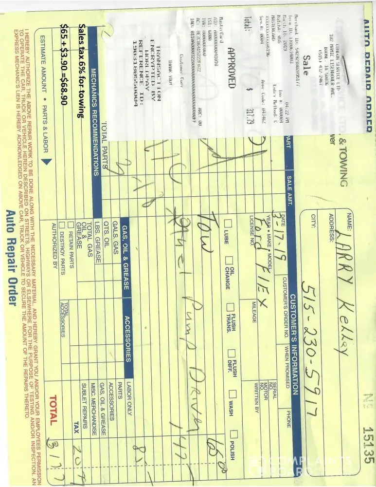 On Saturday, March 16th I dropped off my car for oil change and inspection of "check engine light". and signed to approve work to be performed for $149.95. That evening I got a call stating that my coolant was over flowing, so I even said "great!" because I want to get a fluid flush anyways and approved work to be performed over the phone. (I was aware of...