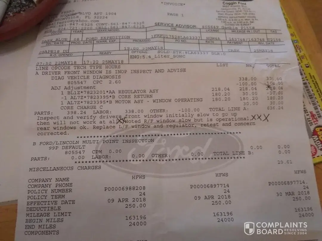 I bring my truck to coggin ford to repair the left drives window a fter 712.46$ and 12 days I going home with a broken right window, I guess this is how mr johnson the general manager does business and builds customers!. I am extremely unhappy in the way I was treated, I bought the truck used from coggin honda 30 days before I wish I never did business with coggin!