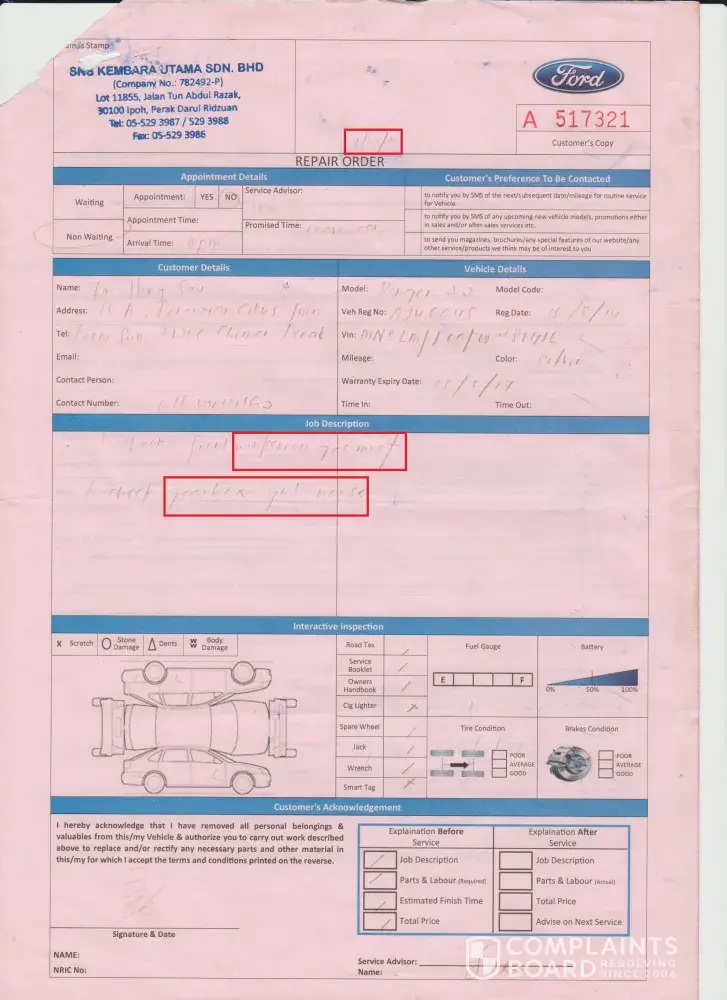 Friends, I am sharing my story here is not meant to take revenge, but to tell the public the service quality of Ford in Malaysia, don't be the next victim! Lastly, imagine you were in my shoes, what is your feeling after years of servicing yet you are paying monthly car instalment! Even though my car price doesn't fall under luxury category, but is it how to treat a customer, be a responsible dealer!