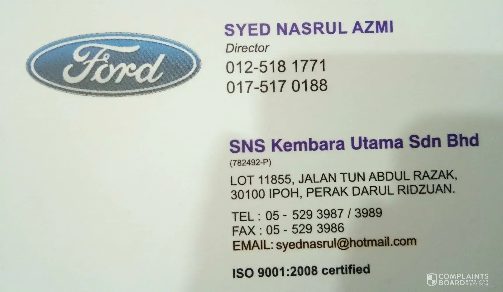 3. The rude attitude of the director of SNS Kembara Utama. His name is Syed Nasrul Azmi.The director failed to solve the consumer's problem and kick the ball to third parties. After three years nonstop car servicing at the same place, same excuse given, it sufficiently proved that Syed Nasrul Azmi is such a poor director in solving the problem, I am wondering how this company got the license from Sime Darby, a big question to think about.