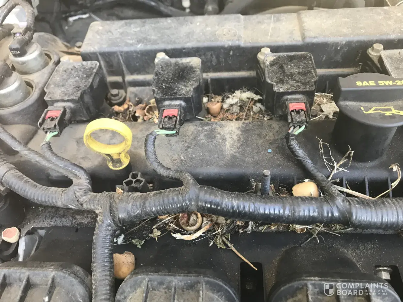 A mouse house was removed from engine compartment and a wire was relaced/repaired. My complaint is about all the debris left on the engine. Not cool! This is why I hate taking my vehicle to a dealer.