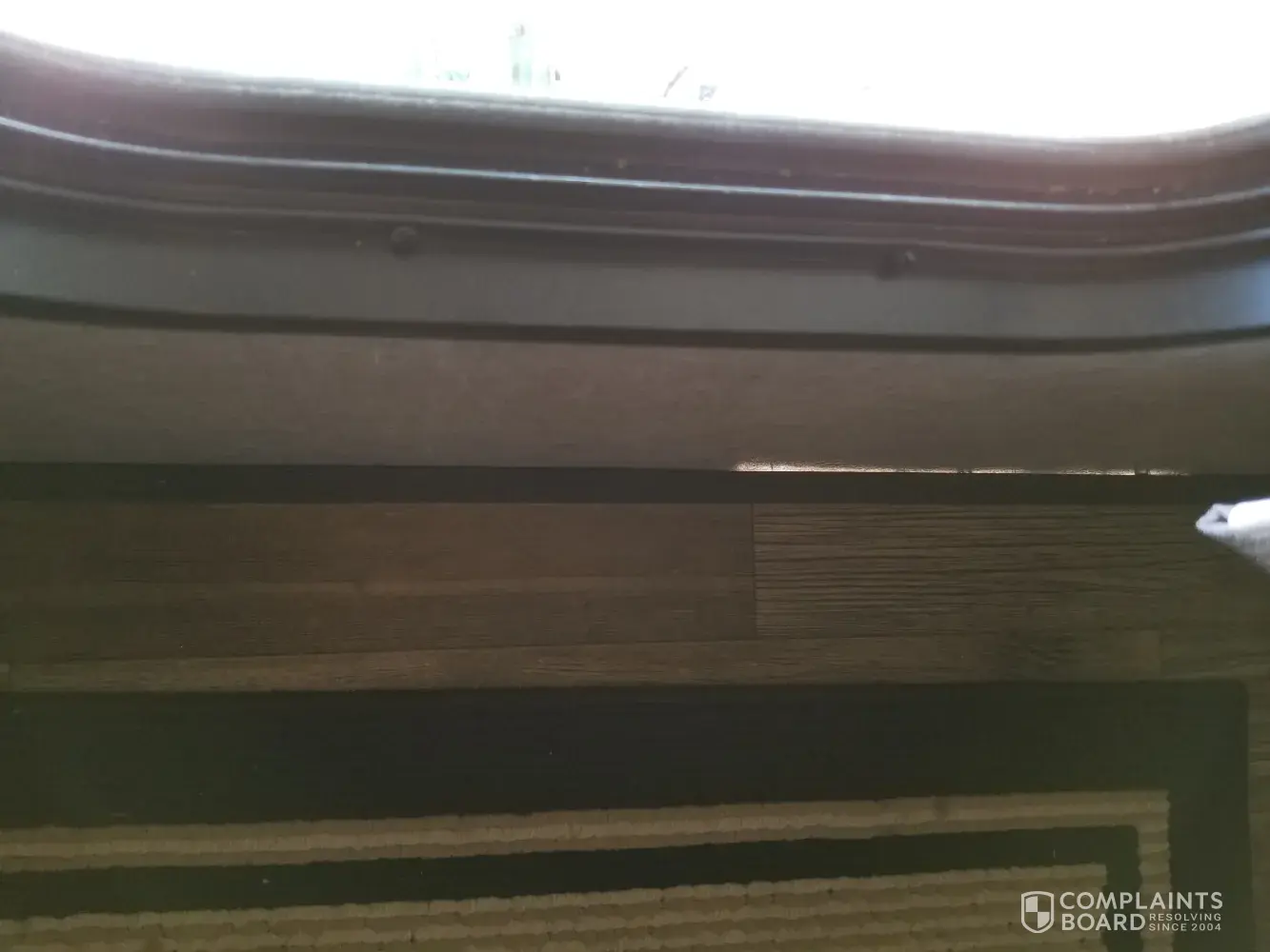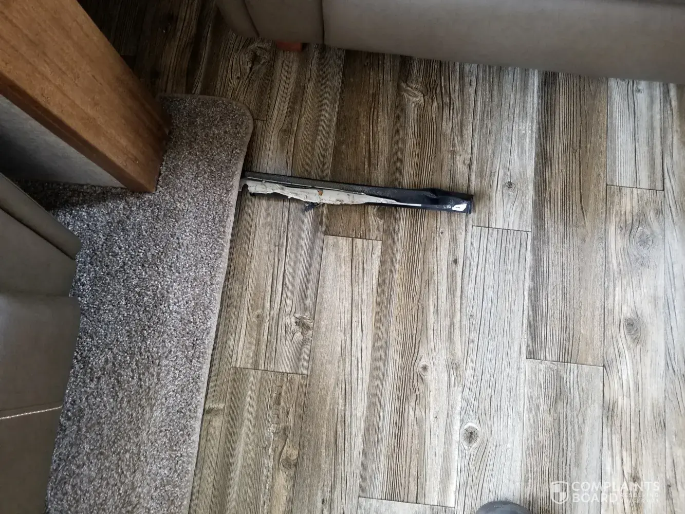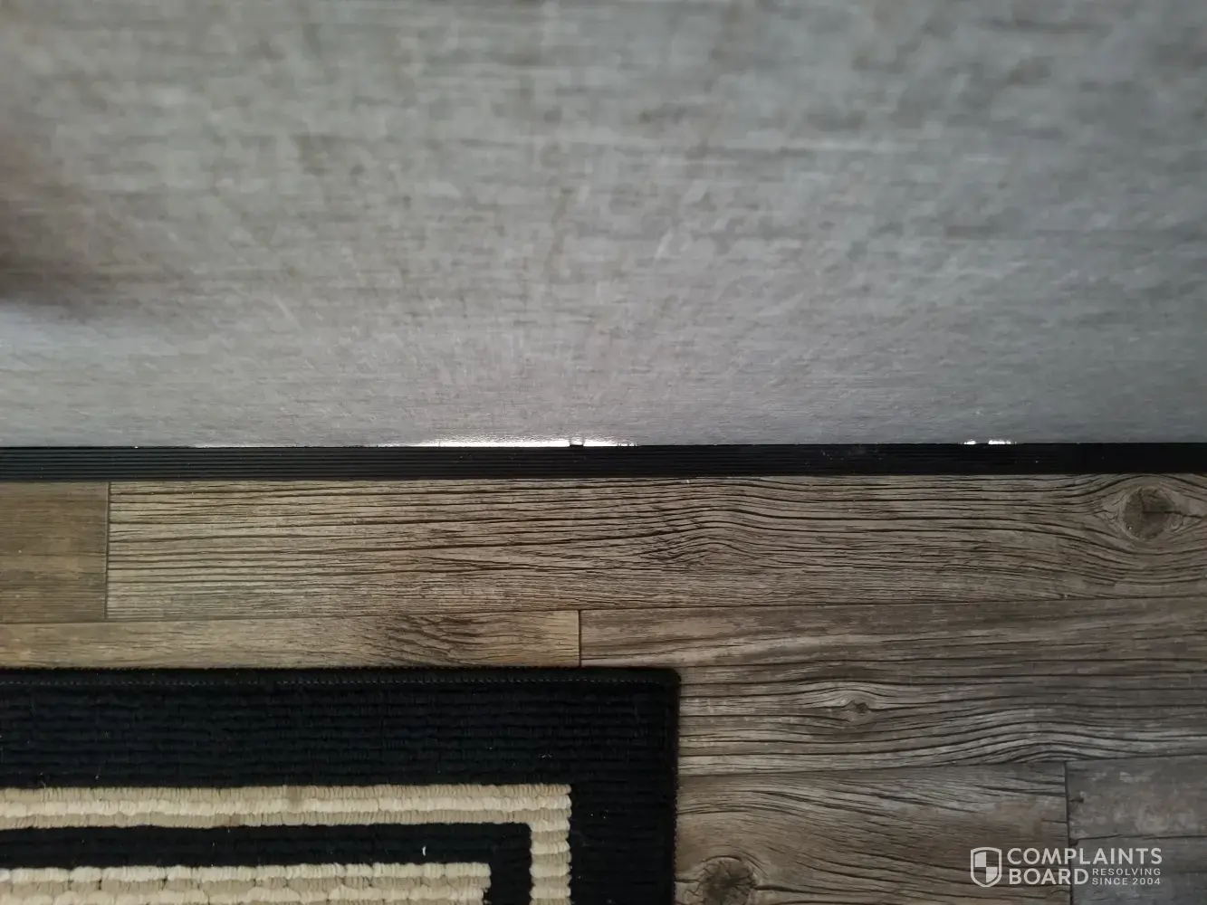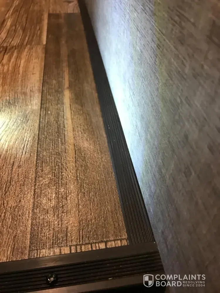We went on our first camping trip with our 2018 Forest River 5th wheel 36BHQ and while camping my wife noticed the sunlight was coming through the floor by the wall in the hallway going up to the bedroom. All along the outside wall you can see light coming through all along the floor.