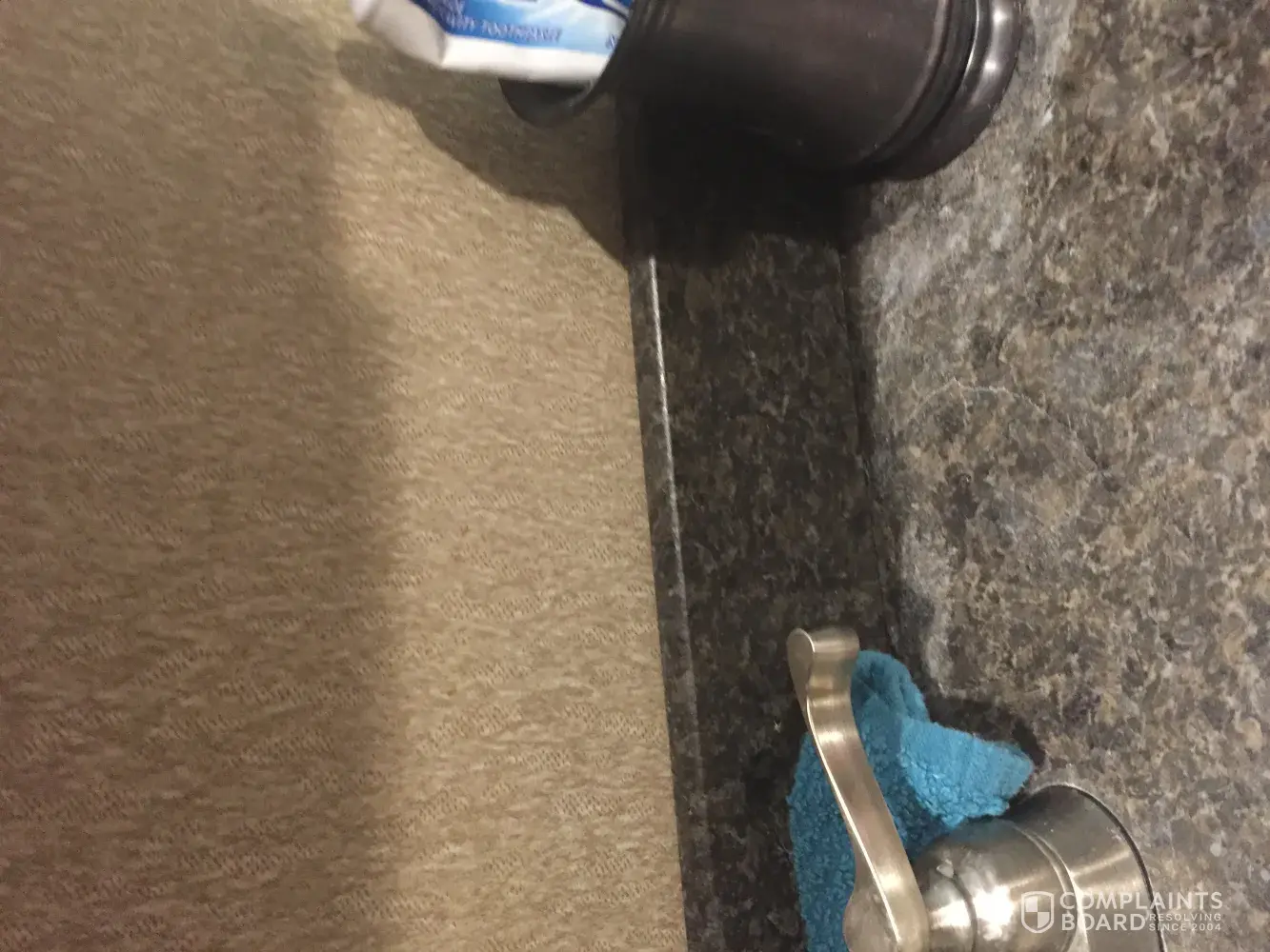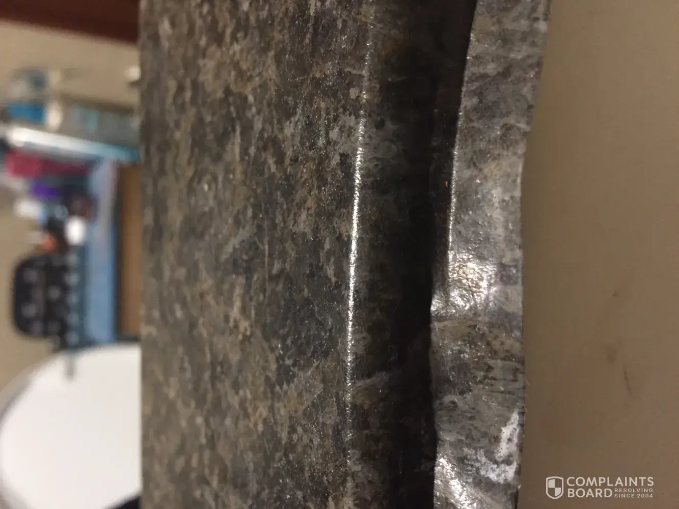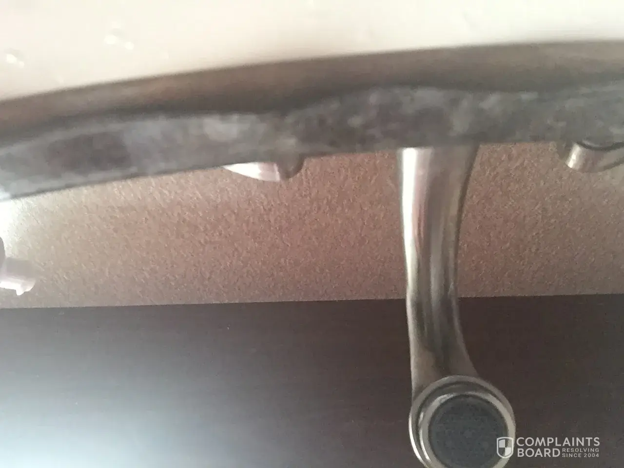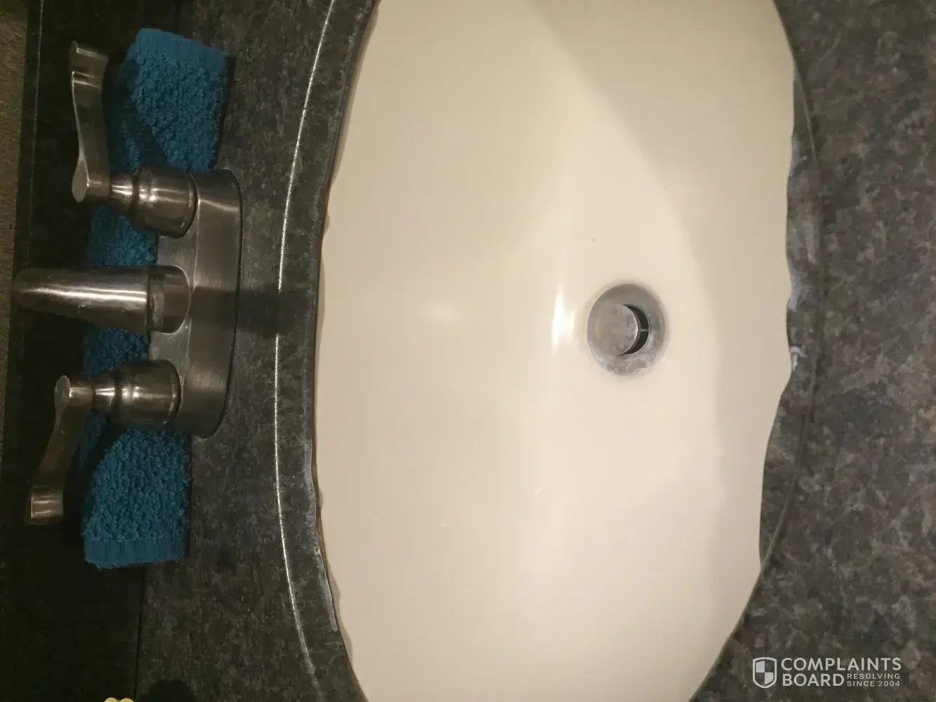 Vanity sink in bathroom laminate cut too short around sink completly lifted looks awfull reported to forest river in June was told that was a problem been trying to get replaced since June 2016 now Feb. talked to the diesel division they don't seem to be able to order parts (new vanity top)