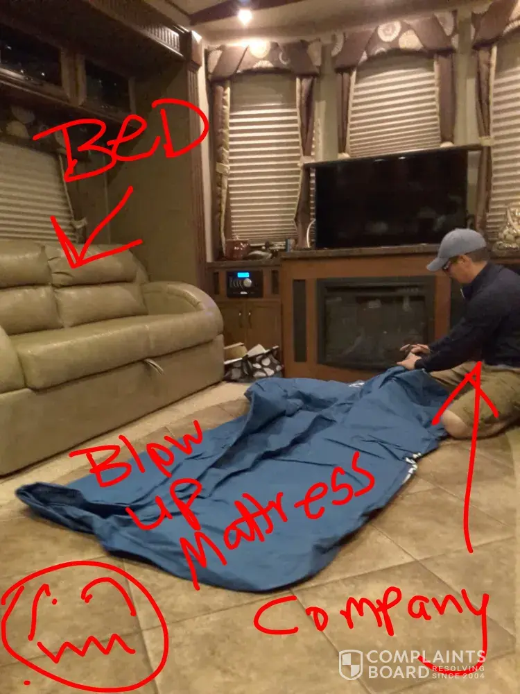 I'm really sick and tired of complaining and nothing being done. For as long as we have waited, I almost wish that they'd have looked me in the eye the very first visit and said, "hey lady, you ain't gonna get that sleeper fixed, not ever, Cuz we just ain't gonna do it for ya...get your blow up mattress out and store in in that broken piece of furniture Cuz yer gonna be needing it... and that spread in your master? Dig out that old quilt, and get used to it Cuz your bedroom ain't ever gonna look like the model you looked at"