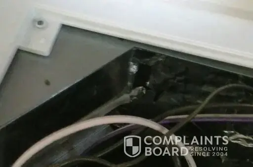 Hello Lisa. I did take pictures on my phone of the frost sensor all coilded up and hanging down by the air filter and of the hole in the duct work allowing the cold air back up into the coils and i have included them in this email. I dont have access to a fax machine but i can mail a copy of the invoice to you if you provide an address. The contact in the service dept. at Cheyenne camping center is Ron Skiles. [protected]) He said that he contacted Dometic but they did not respond. He may also provide some info for you about the repair.