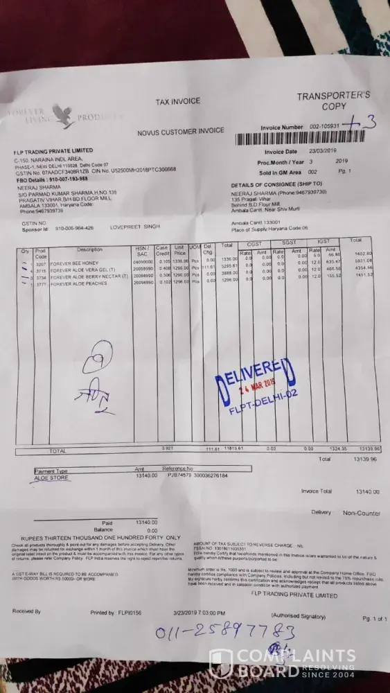 I am Neeraj sharma from Ambala Cantt. I am recently joined with your FBO business partner. My FBO no. [protected]. I have sent a purchase order to you with invoice no. [protected] dated 23/03/2019.