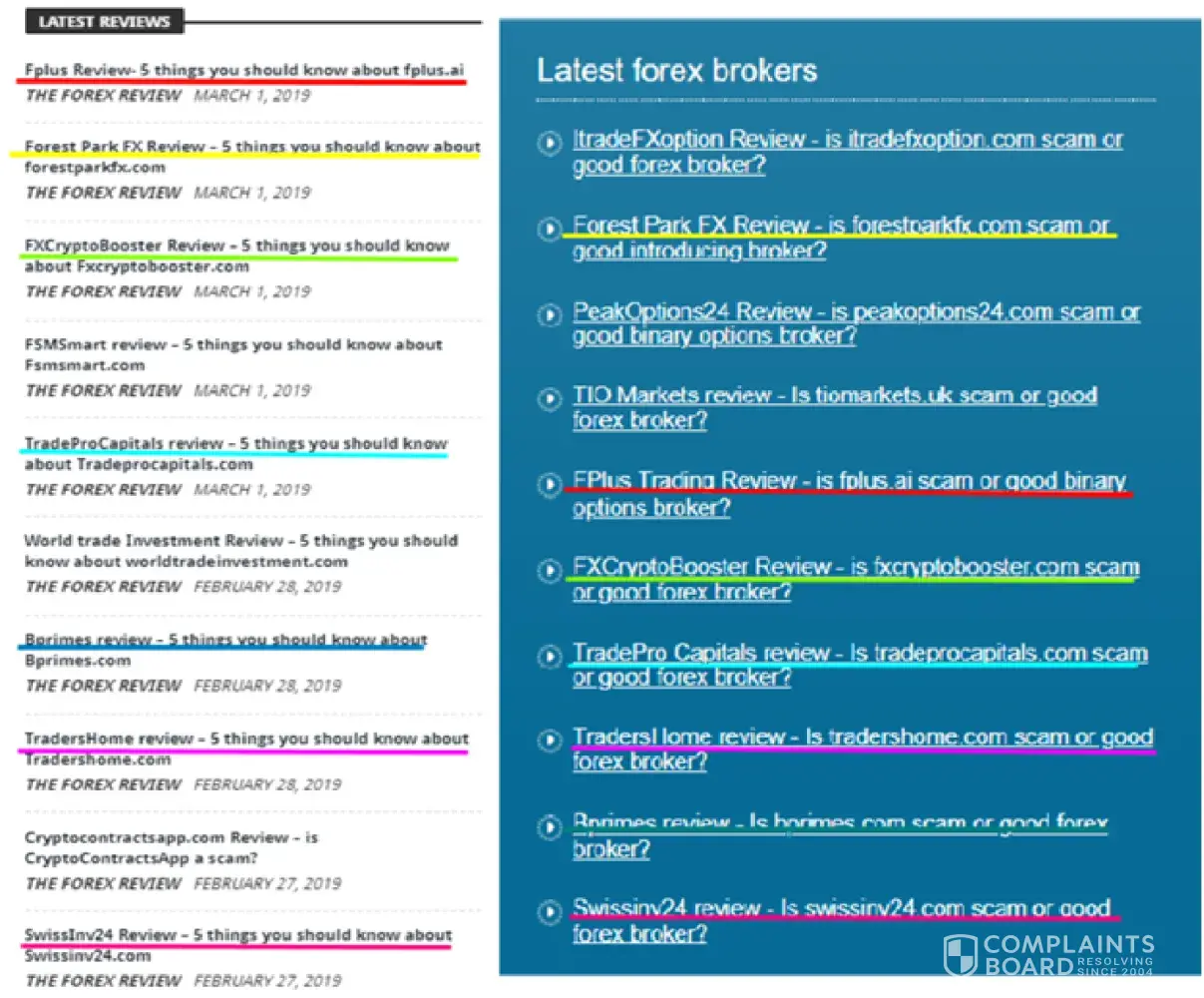I was reading their recently written broker reviews and I have found that they are repeating the same reviews of same broker. If these websites are actually unrelated, how can there be 7 out of 10 similar broker reviews written together recently?