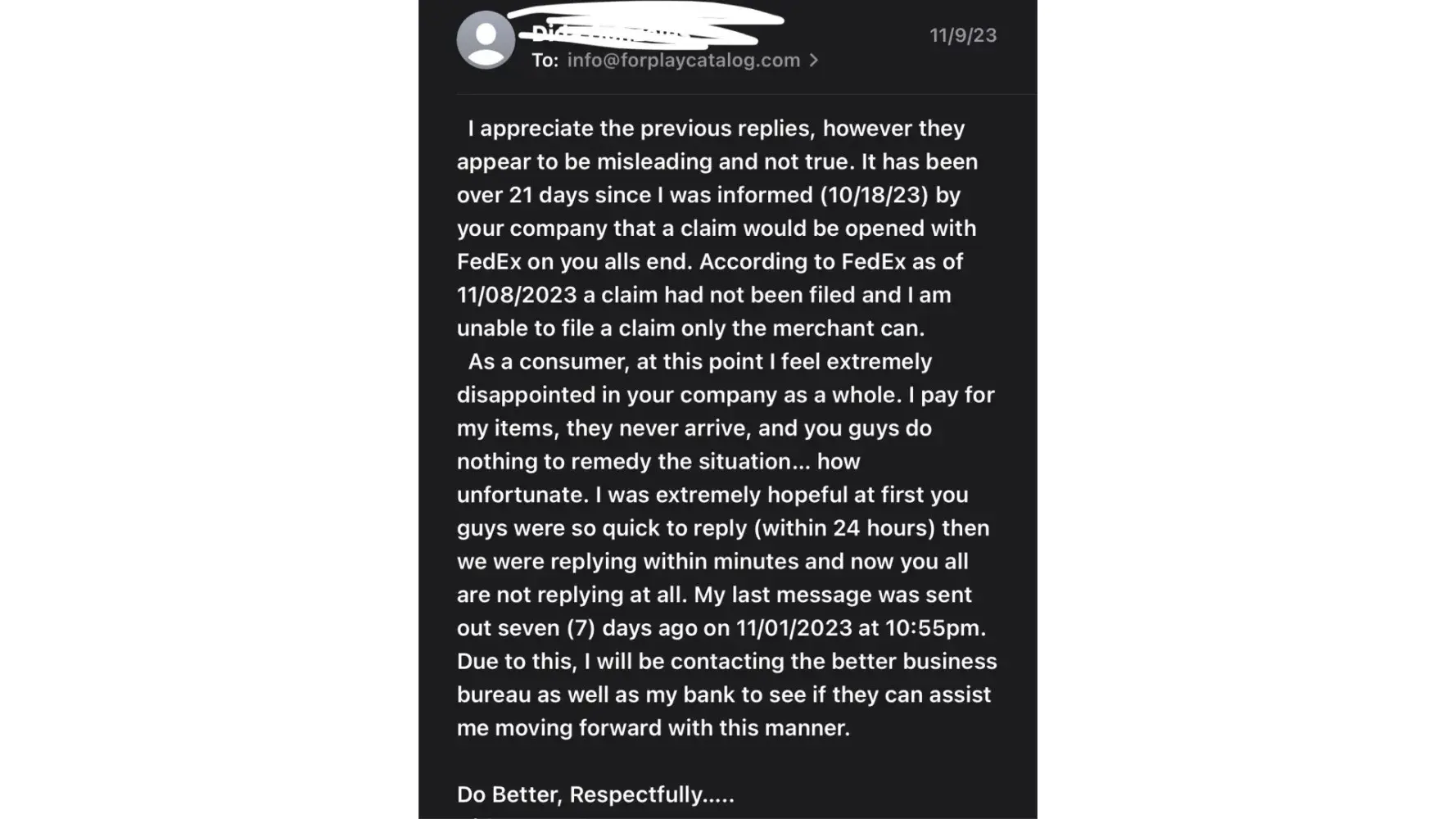 So, folks, take my advice and steer clear of Forplay. Trust me, you don't wanna deal with their terrible customer service. There are plenty of other places out there that'll treat ya right. Don't make the same mistake I did.