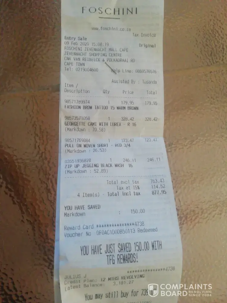 Yesterday I got a call from a very unhelpful and cocky girl called Taryn who informed me that the sneaker that I purchased online is not available anymore because the warehouse "oversold" the sneaker. I was then told that I had to do a manual credit from my side in order to get my money back...like it was my fault that the warehouse oversold and now I have to go through this process to get my money back from TFG!